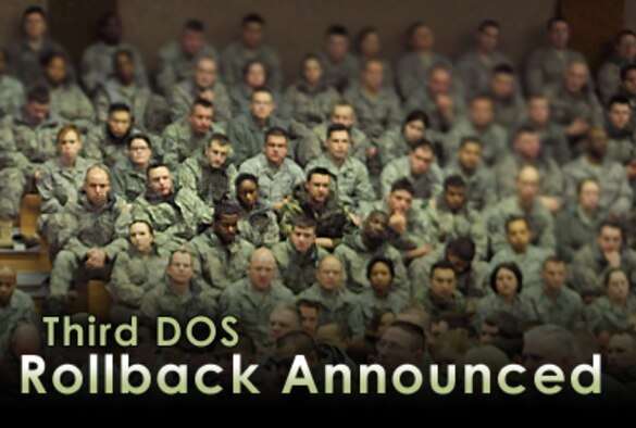 In November, officials announced plans to conduct an April 30 DOS rollback for enlisted members. A second rollback was announced in March with a mandatory DOS rollback of June 30. The third rollback will also accelerate the date of separation for Airmen, based on their years of service and re-enlistment eligibility or assignment availability codes.