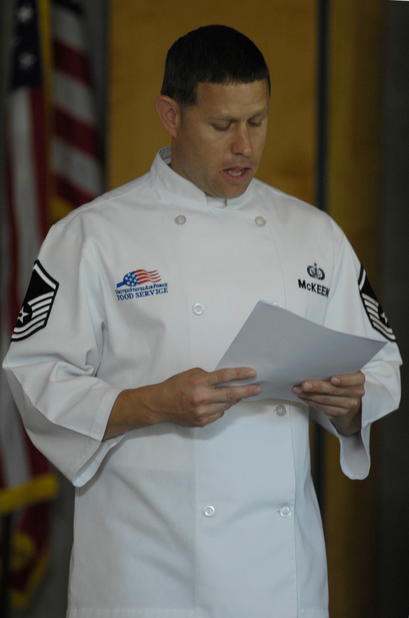 Master Sgt. Shawn McKeen speaks to Airmen from the 628th Force Support Squadron about Wingman Stand Down Day to help prevent suicides and private motor vehicle accidents at the Gaylor Dining Facility on Joint Base Charleston, S.C., May, 10, 2010. The stand down day was ordered by the Air Force Chief of Staff Gen. Norton Schwartz to halt the rising number of Airmen who are dying in reckless accidents or suicides. Common reckless behavior that leads to an accident are speeding, texting while driving, and drinking and driving. (U.S. Air Force Photo/Airman 1st Class Lauren Main)