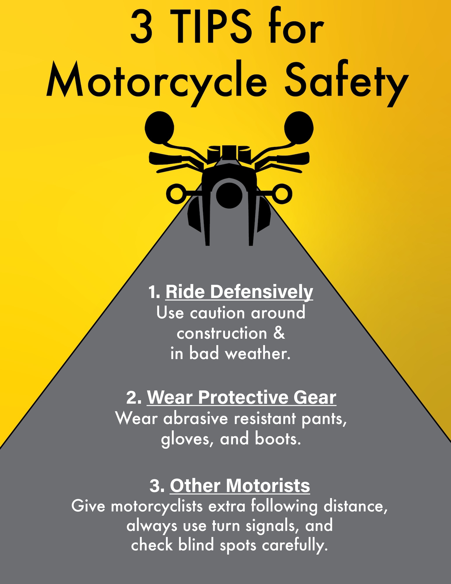 Contact your unit safety representative, motorcycle safety representative, or the 628th Air Base Wing safety office for any questions or concerns regarding motorcycle safety at 843-963-5597 or email 628abw.se@us.af.mil.