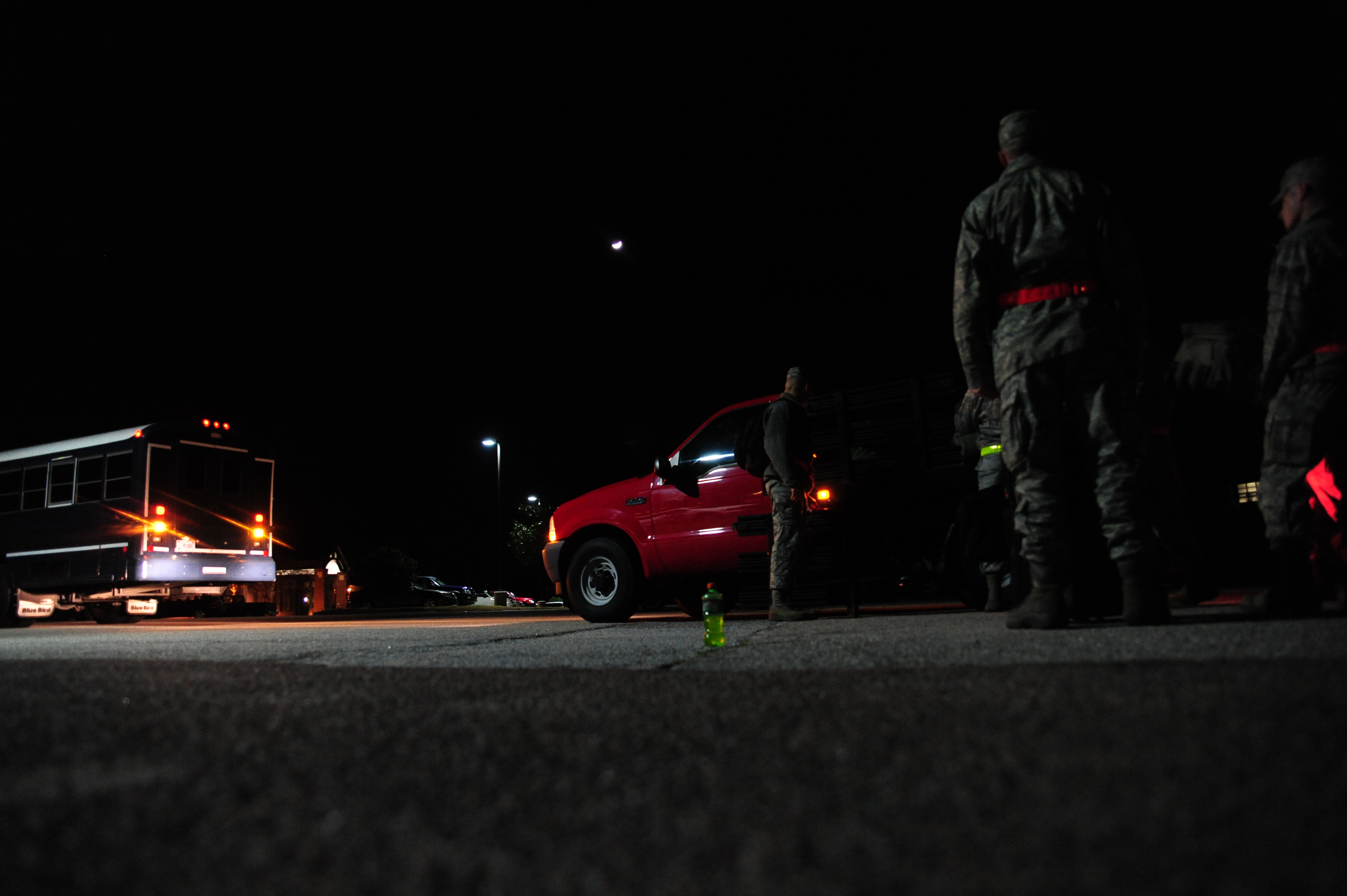 Joint Base Charleston Airmen prepare to leave for the Operational Readiness Inspection held at Gulfport, Miss. Nov. 30, 2011. More than 600 Airmen simulated a deployment for the ORI. (U.S. Air Force photo/Staff Sgt. Katie Gieratz)(Released)