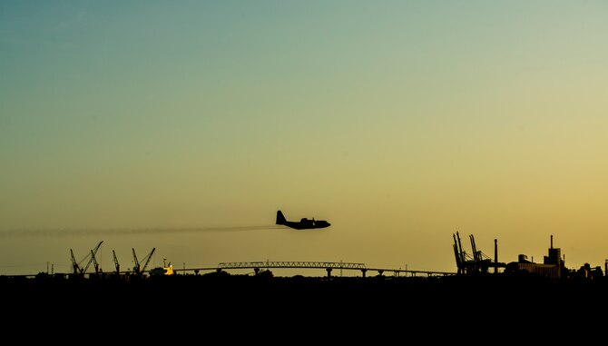 An Air Force Reserve aircrew flying a C-130 Hercules assigned to the 910th Airlift Wing, Youngstown Air Reserve Station, Ohio, performs aerial spraying June 25, 2014, over Joint Base Charleston, South Carolina. The C-130 Hercules and crew sprayed for mosquitos on JB Charleston and is the only unit of its kind in the Air Force. (U.S. Air Force photo/Airman 1st Class Clayton Cupit)